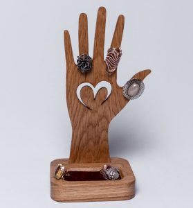 The jewellery stand is hand finished from natural oak supplied within Russia. Oak is a course grain wood and thus create a distinct patterns. The item is varnished to protect the wood.